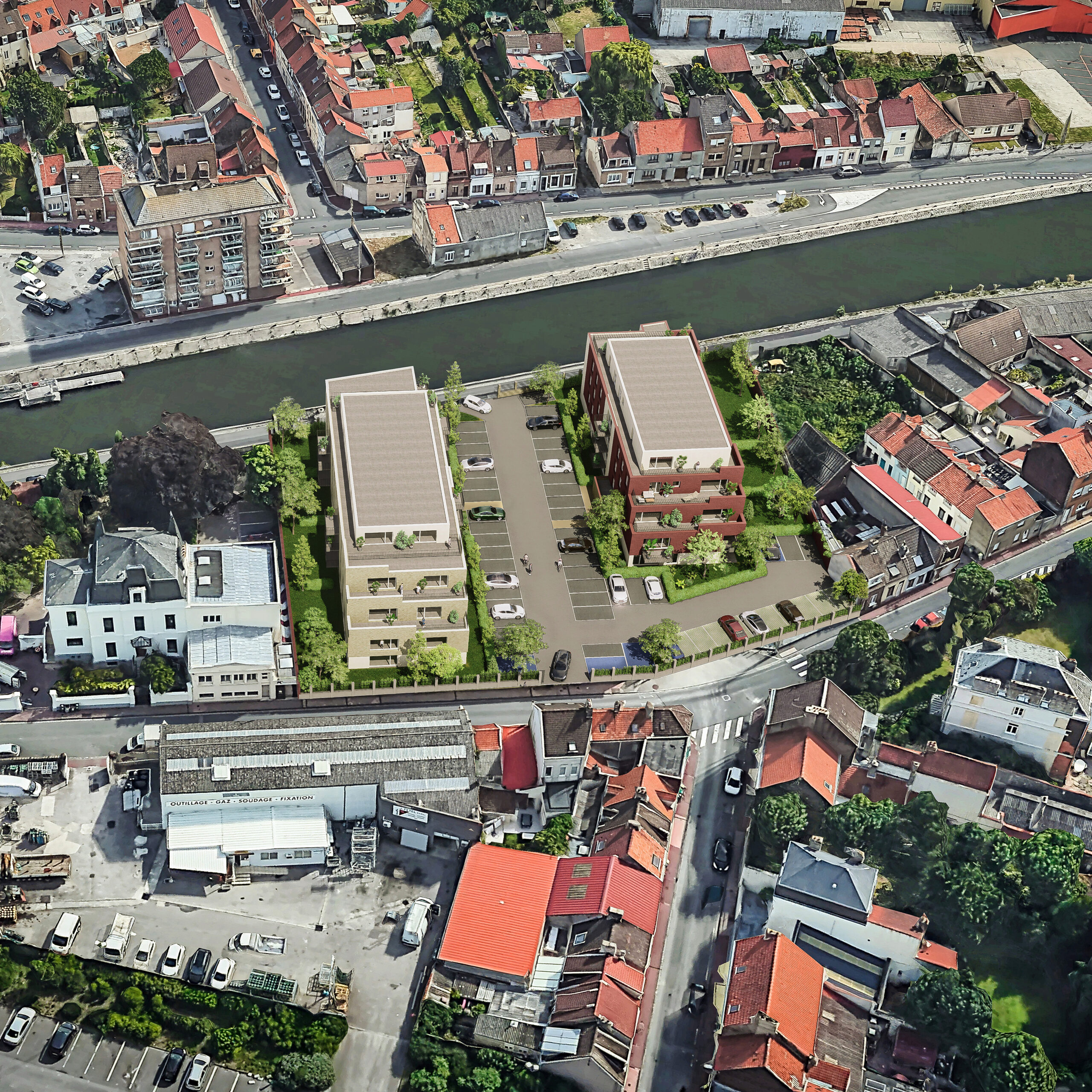 Réalisation de 57 appartements en deux bâtiments de trois étages avec attique au bord du canal de Calais.