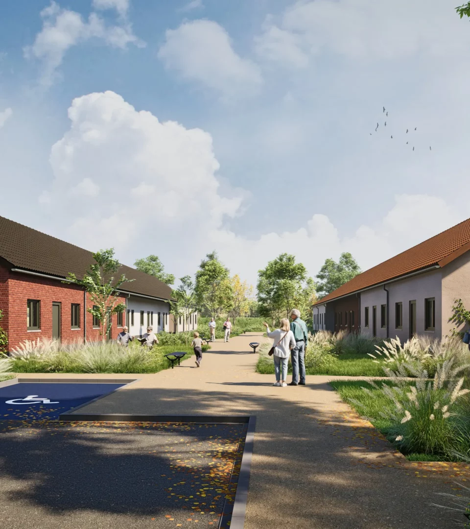 Réalisation d'une clos intergénérationnel, avec 12 maisons, 16 logements duplex et 14 maisons en béguinage.